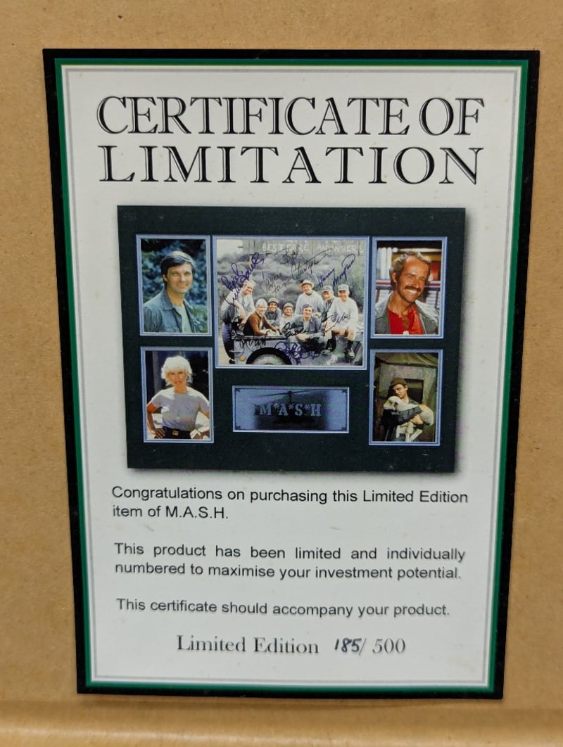 LIMITED EDITION 'M*A*S*H' CAST AND CREW SIGNED PHOTOItem Size: Height: 52cm, Width: 62cmSigned By Alan Alda, Bill Christopher Larry, And The Crew Of MashIncludes Certificate Of AuthenticityCondition: Good - Refer To Images585036+6