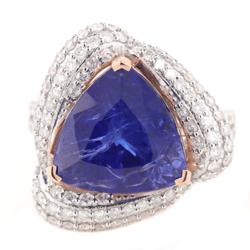 The Centre Features, One Trilliant Cut, Tanzanite (9.14Ct, Moderate-Heavy Natural Inclusions), Set. Encompassing The Centre Are, 144 Round Brilliant Cut, Diamonds (1.511Ct Tdw, H-J Colour, Si-I2+), Claw Set. Ring Size Q.
