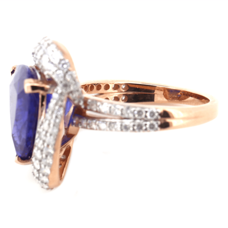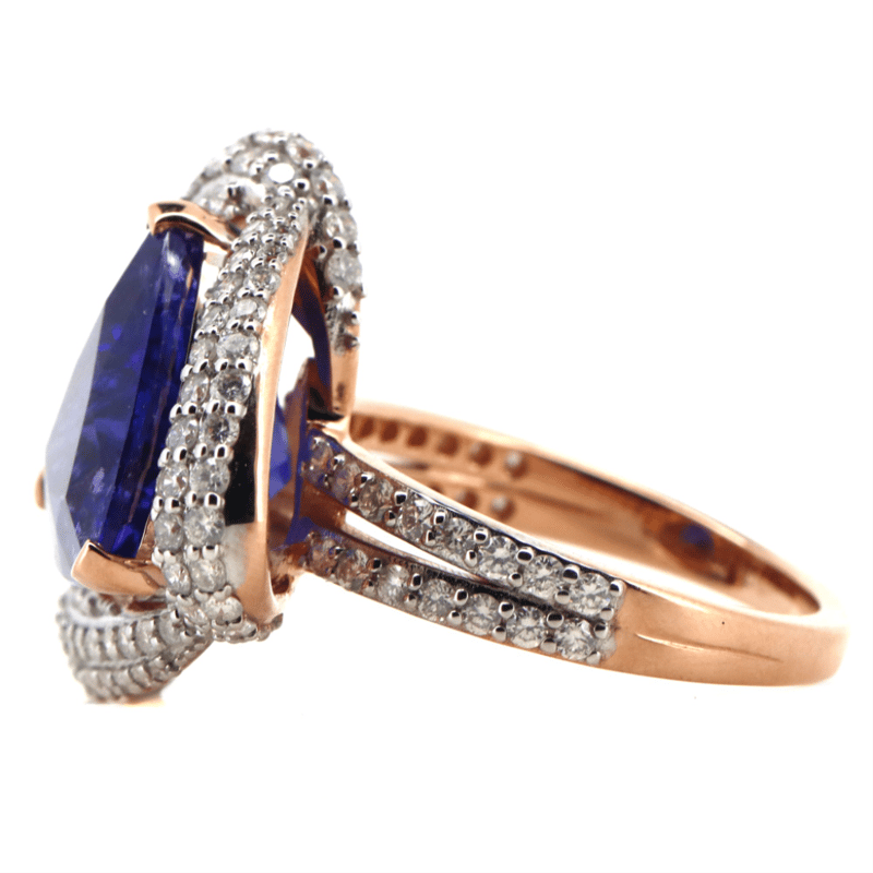 14K ROSE GOLD, 9.14CT TANZANITE AND DIAMOND, COCKTAIL RING