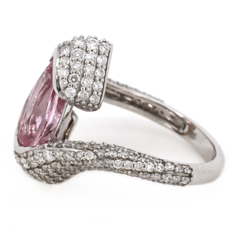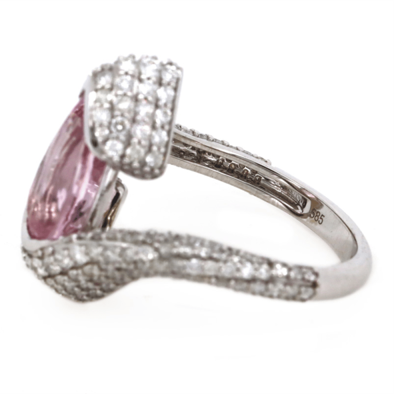 14K WHITE GOLD, MORGANITE AND DIAMOND, CROSSOVER RING