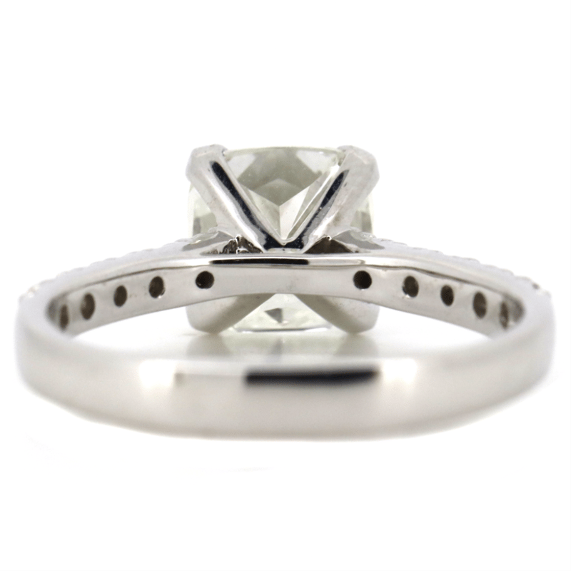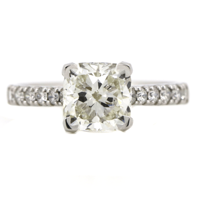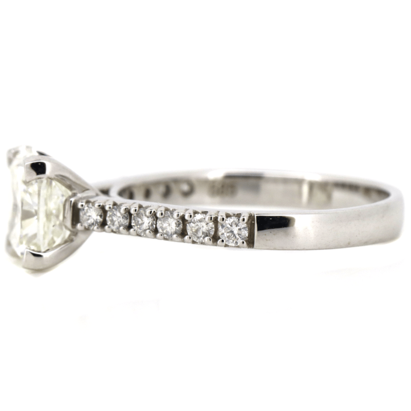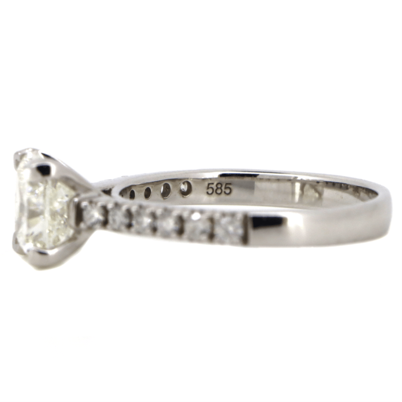 The Centre Features, One Square Princess Cut, Diamond (2.02Ct, H-I Colour, Si1 Clarity), 4 Claw Set. Decorating The Band Are, 14 Round Brilliant Cut, Diamonds (0.25Ct Tdw, G-H Colour, Si-I2 Clarity), Bead Set. Ring Size M.