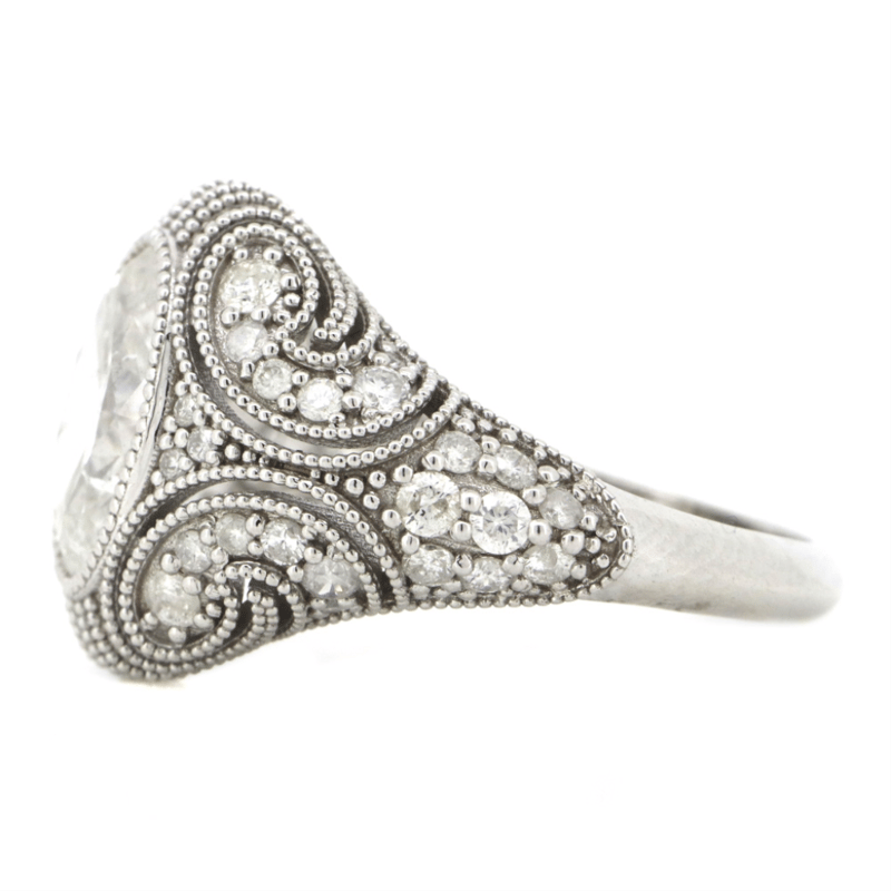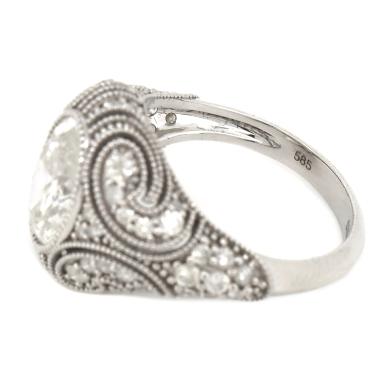 14K WHITE GOLD AND DIAMOND, ART DECO INSPIRED RING