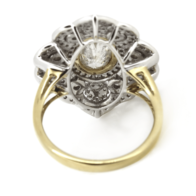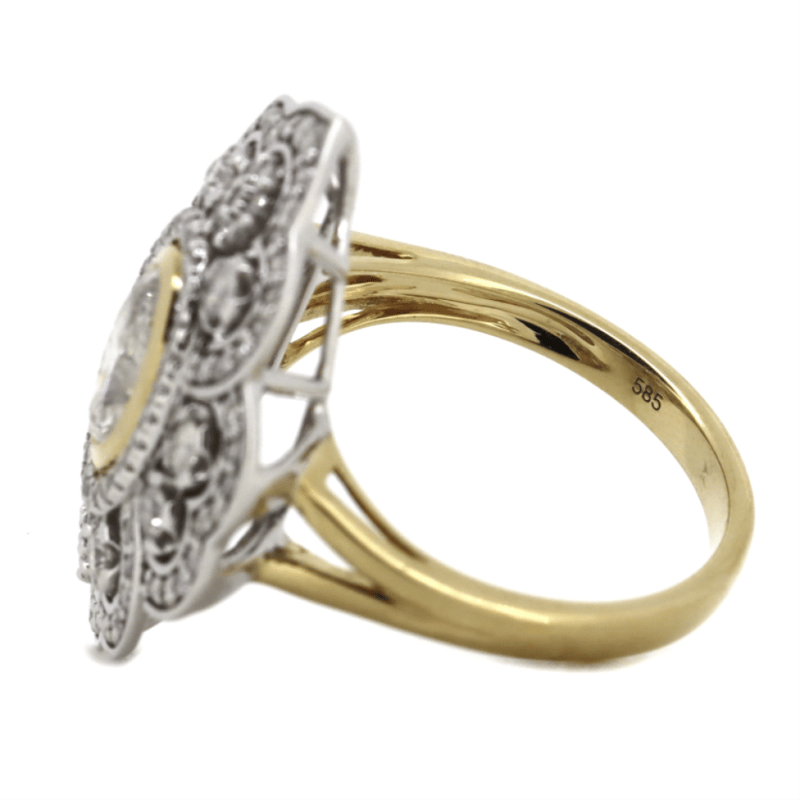 14K YELLOW/WHITE GOLD AND DIAMOND, ANTIQUE INSPIRED CLUSTER RING