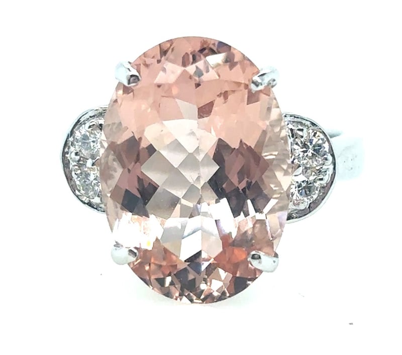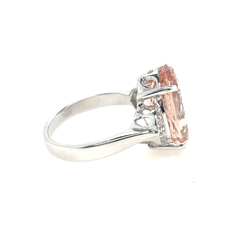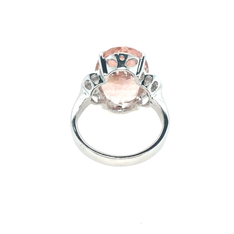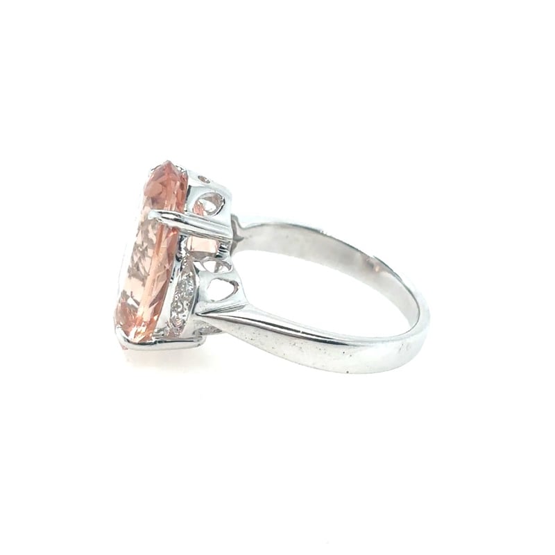 Featuring An Oval Cut Morganite, Claw Set, 8.32Ct In Weight (16.5 X 11.8 X 7.3 Mm), And Orangey Pink In Colour. 4 Round Brilliant Cut Diamonds, Claw Set, 0.18Ct In Total Combined Weight, Vs/Si In Clarity And F In Colour. Finger Size N 1/2