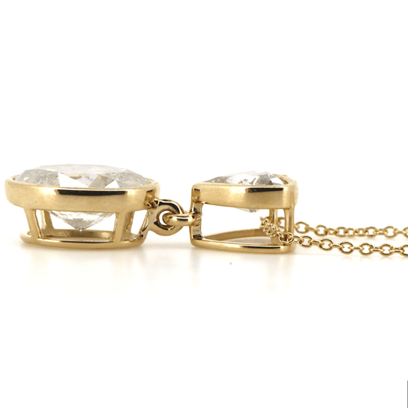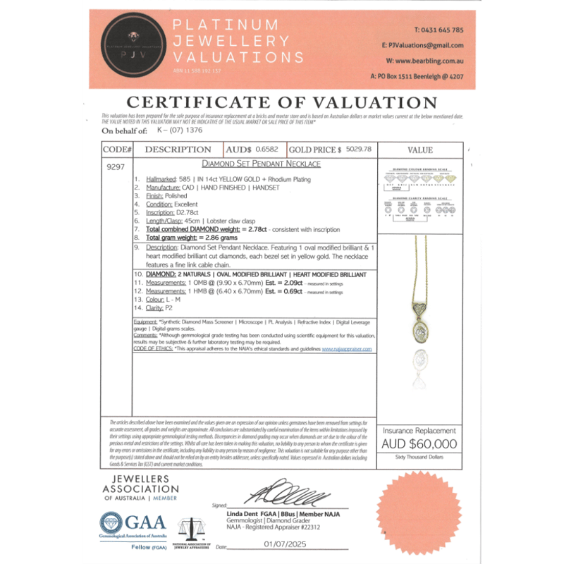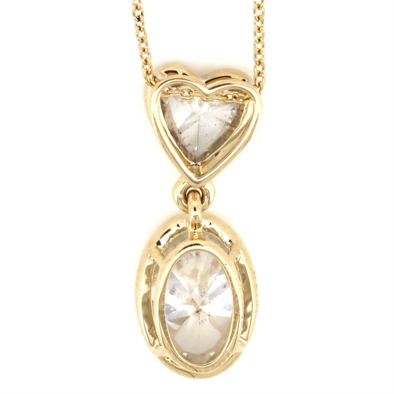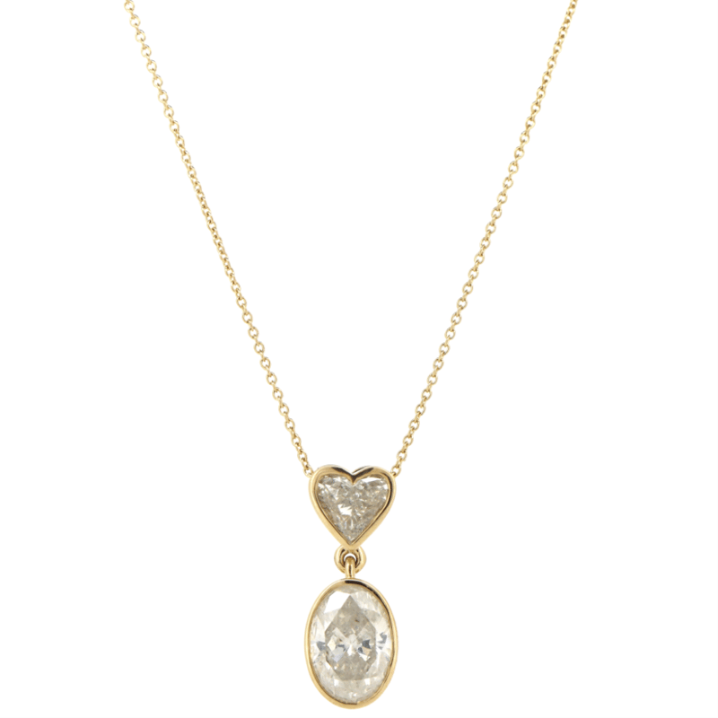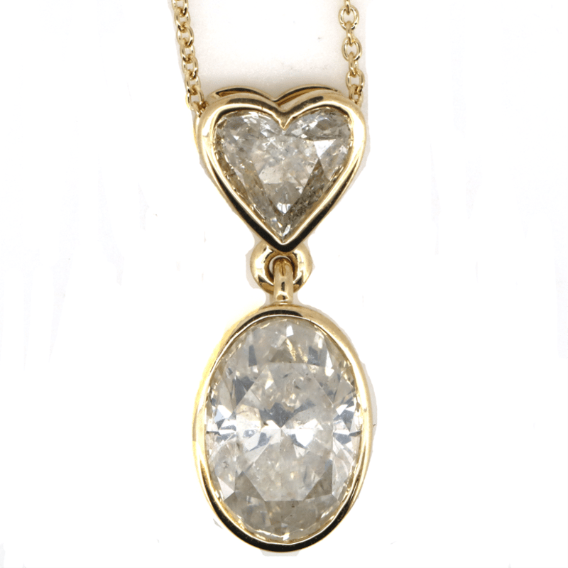The Necklace Features, One Oval Cut, Diamond (2.09Ct, L-M Colour, P2 Clarity), Bezel Set. In Addition The Necklace Features, One Heart Cut, Diamond (0.69Ct, L-M Colour, P2 Clarity), Bezel Set. The Necklace Features A Fine Link Cable Chain And Features A Lobster Clasp. The Necklace Is 45Cm.