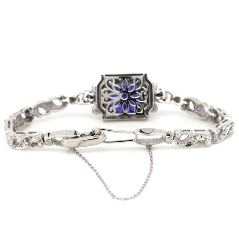 PT 950, TANZANITE AND DIAMOND, ART DECO INSPIRED BRACELET.