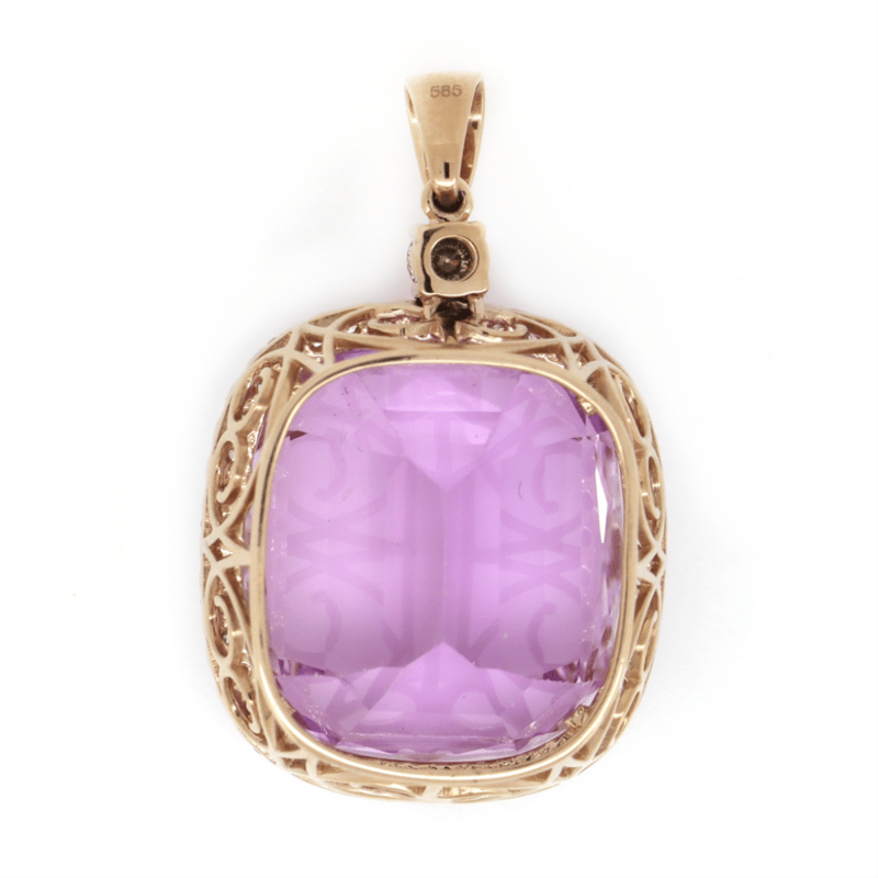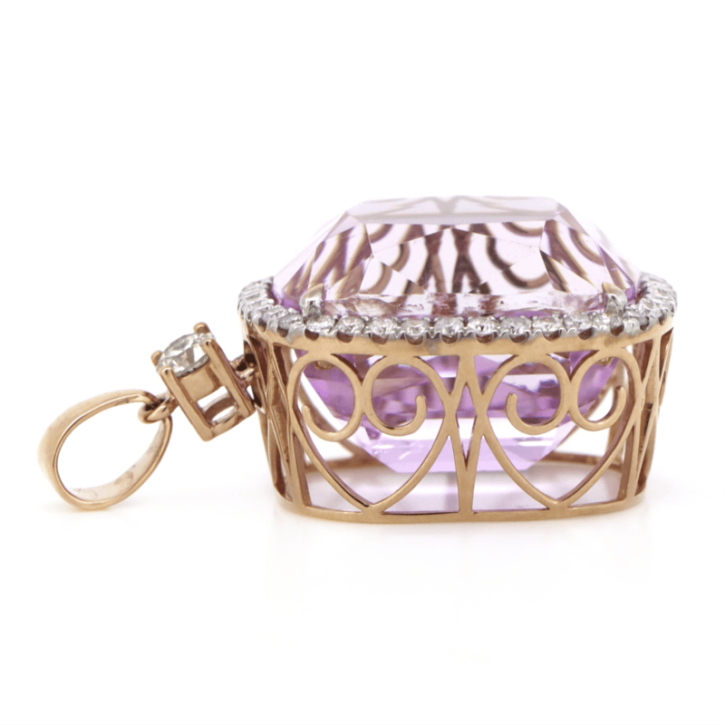 14K ROSE GOLD, 47.97CT KUNZITE AND DIAMOND, STATEMENT PENDANT.