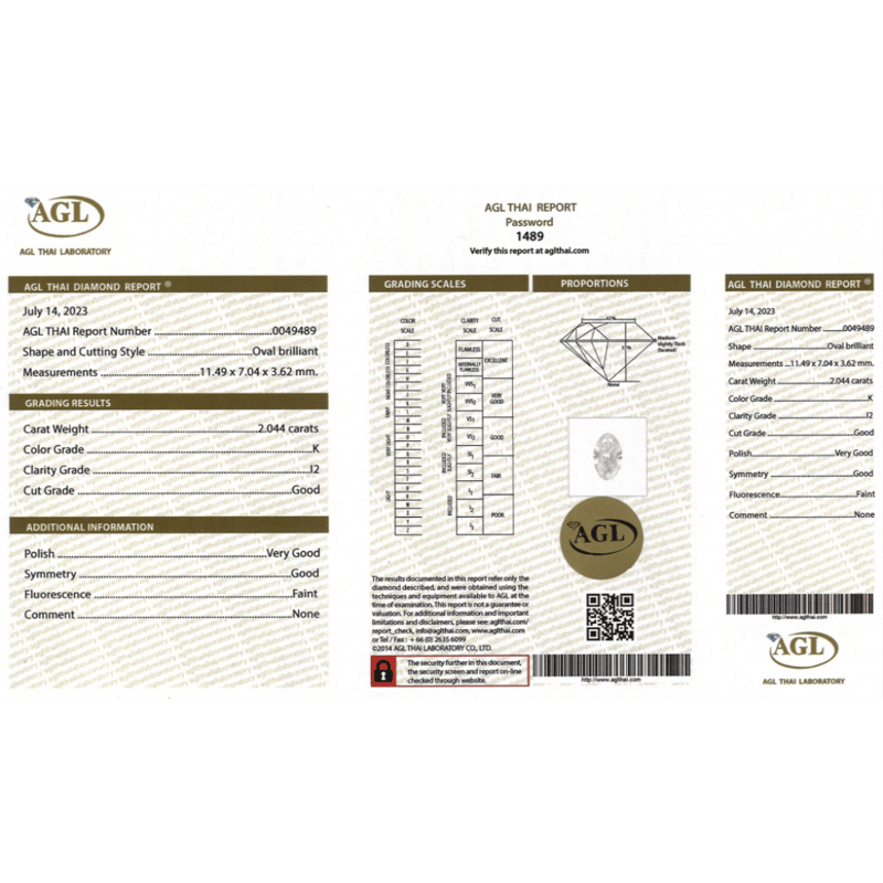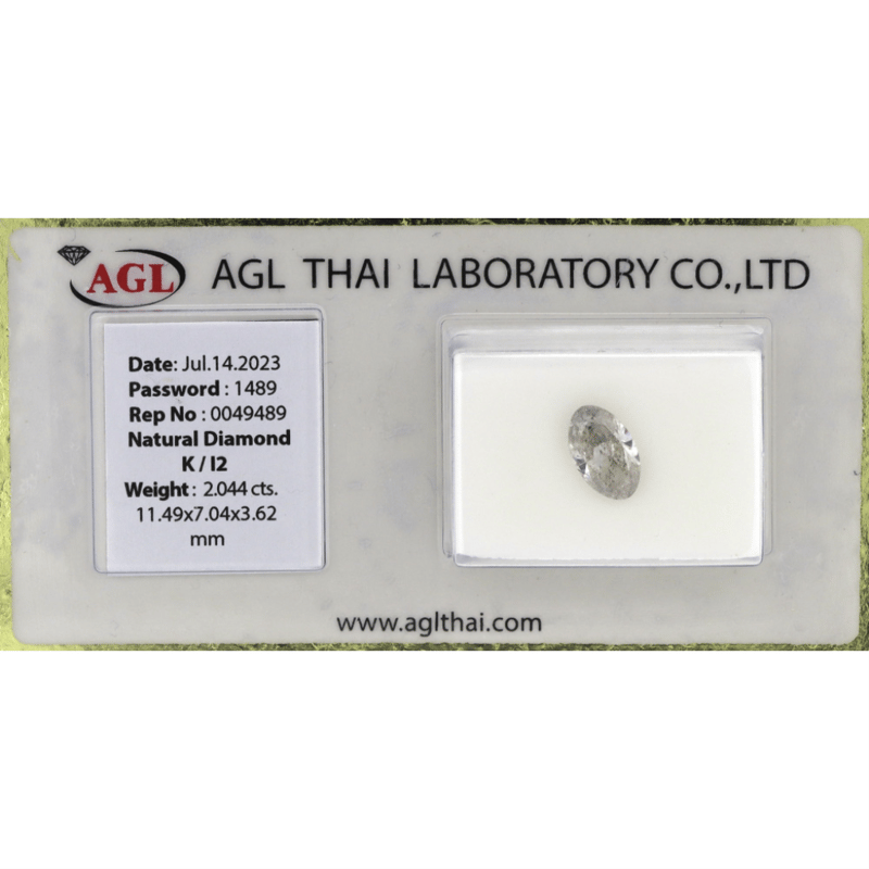 Oval Brilliant Cut, K Colour, I2 Clarity, Loose, Unset. Stone Comes Sealed With Agl Report: 0049489.