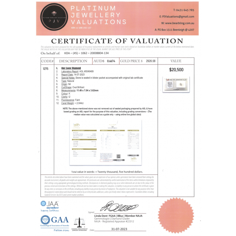 Valuations Provided by an Independent Third-Party Professional Not Directly Associated With Lloyds Auctions at AUD $$20,500.00