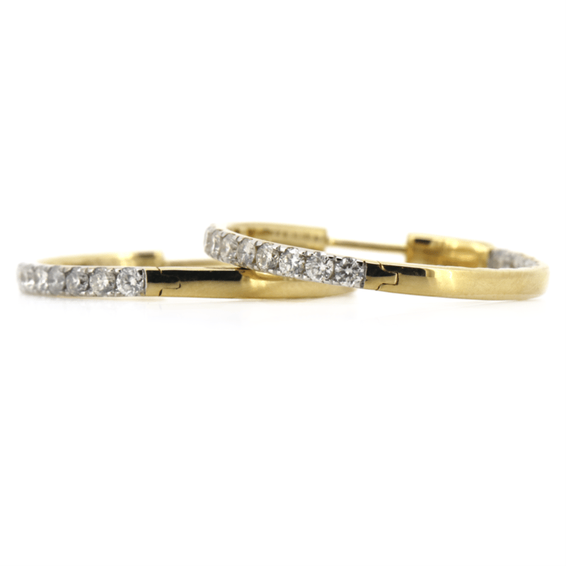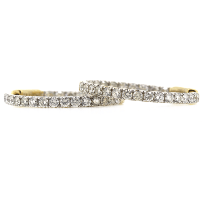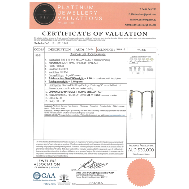The Design Features, 50 Round Brilliant Cut, Diamonds (1.98Ct Tdw, G-H Colour, Si1-Si2 Clarity), Claw Set In White Gold. The Earrings Have Hinged Snap Closures With A Safety Button Release. The Hoop Diameter Is 26Mm.