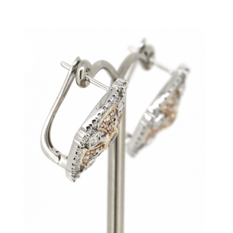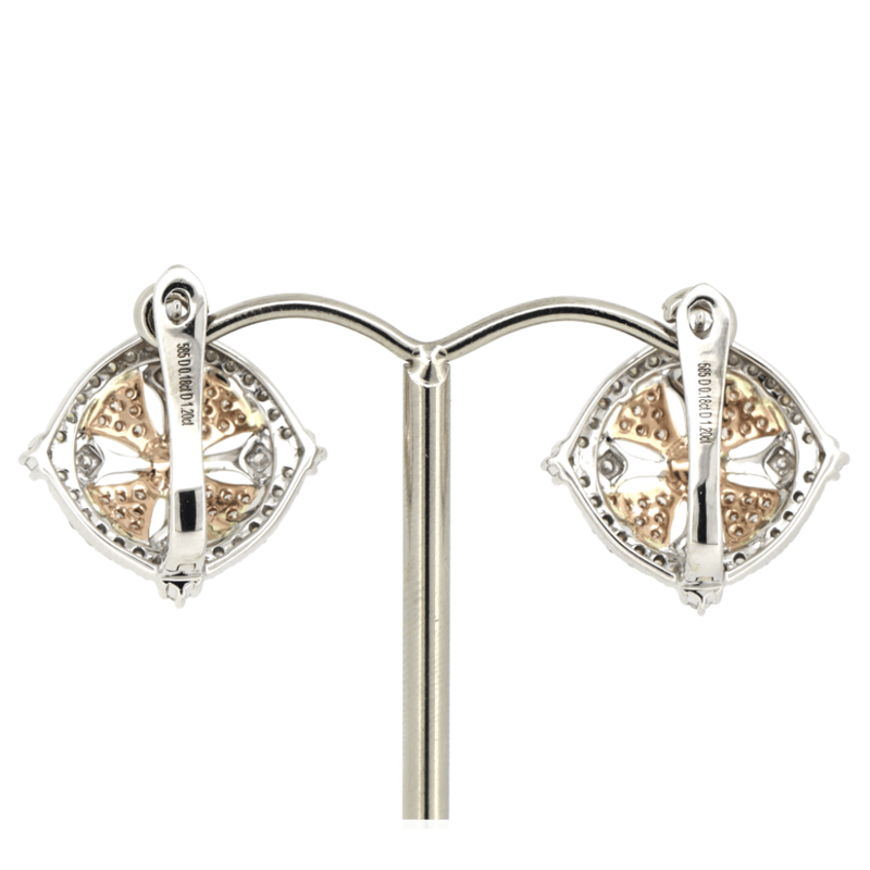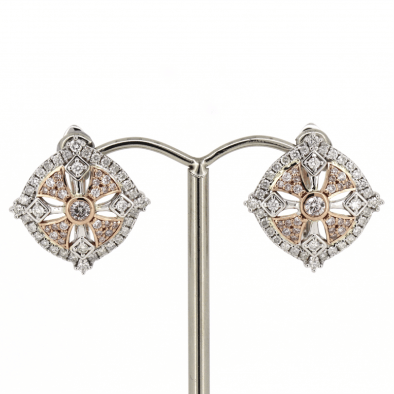 14K WHITE/ROSE GOLD, PINK DIAMOND AND DIAMOND, CLUSTER EARRINGS.
