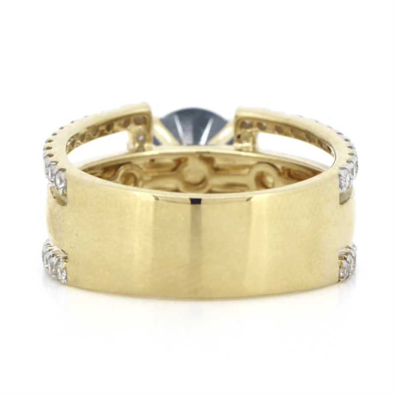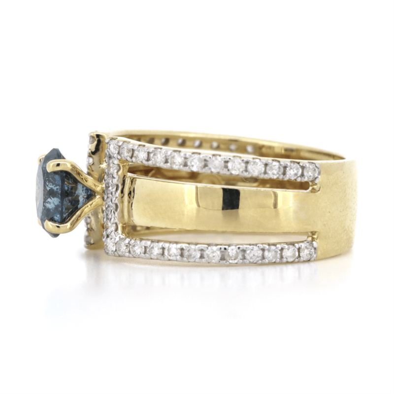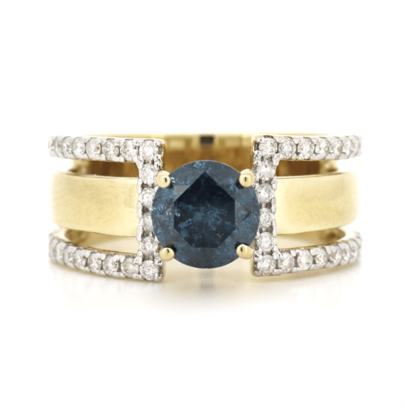 14K YELLOW GOLD, FANCY BLUE DIAMOND AND DIAMOND, DRESS RING.