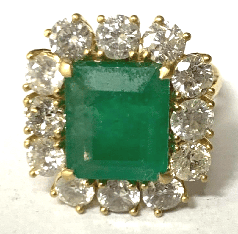 18CT YELLOW GOLD EMERALD AND DIAMOND RING Natural Diamond: 22.29 Ct Natural Emerald: 6.26 Ct Item Weight : 7.17 G Condition: Good - Refer Images 0488339+4