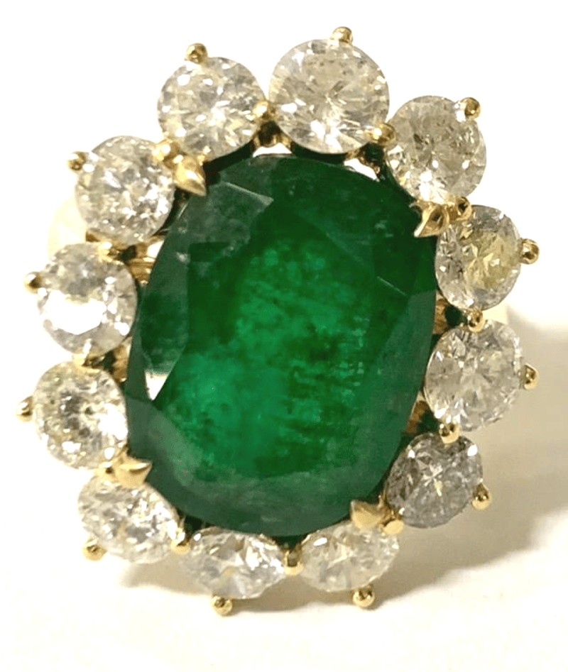18CT YELLOW GOLD EMERALD AND DIAMOND RING