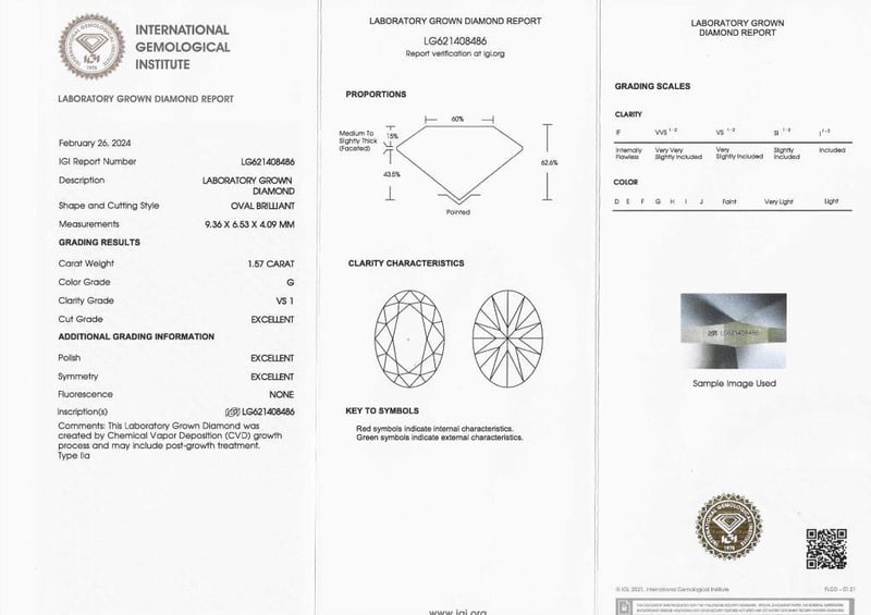 Please note that while all lab grown diamonds listed include certification, the report number or identification may vary upon arrival. This is due to standard manufacturing and batching processes. However, the diamond’s specifications — including carat, color, cut, and clarity — will match or may even exceed those advertised.