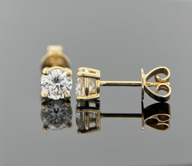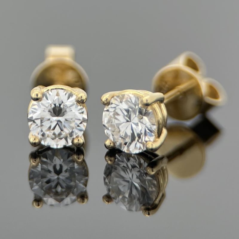 2.08 CARATS DIAMOND SOLITAIRE EARR 2.08 Carats Diamond Solitaire Earrings Igi Certified Set In 18K Yellow Gold 2.08 Carat Round Brilliant Diamond D/Vs1 (For The Pair) Igi Certificate # Lg 689504806 & 689529135 Laser Inscribed : Labgrown Igi Lg 689504806 & 689529135 Cut :Ideal Polish : Excellent Symmetry : Excellent Flourescence : Non Type : Hpht Total Earrings Weight 2.40 Grams. Condition: Good - Refer Images 0488974+82