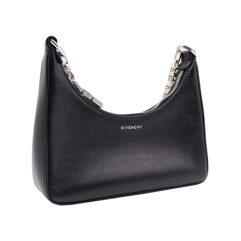GIVENCHY BLACK LEATHER MINI MOON CUTOUT SHOULDER BAG Exterior Material: Leather With Silver-Tone Hardware, Single Top Handle, Top Zip Closure And A Shoulder Strap.Interior Material: Leather Lining With A Main Compartment.Length: 19CmHeight: 8CmDepth: 5CmHandle Drop: 19CmStrap Drop: 40Cm DetachableAdditional Condition Report- Minor Sign Of Wear And Tears On Exterior- Minor Scuffs On Exterior Corners- Minor Wear In Interior- Sign Of Wear And Scratches On HardwareComes With- Original Dustbag- A Detachable Strap- Proof Of PurchaseAccompanied By Certificate Of Authenticity Condition: Good - Refer Images 0163034+26