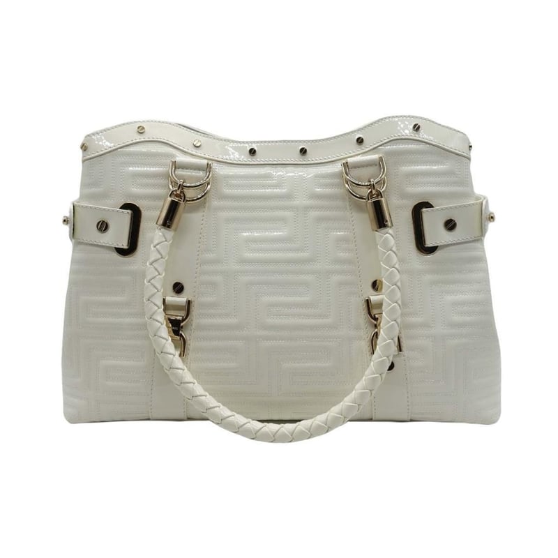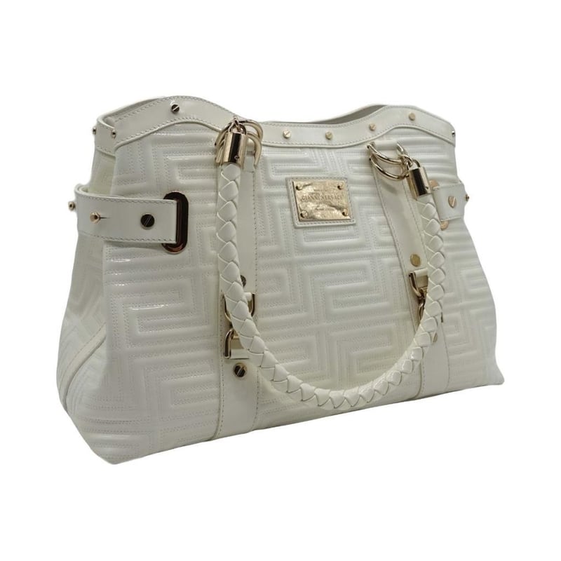 VERSACE WHITE PATENT LEATHER TOTE BAG