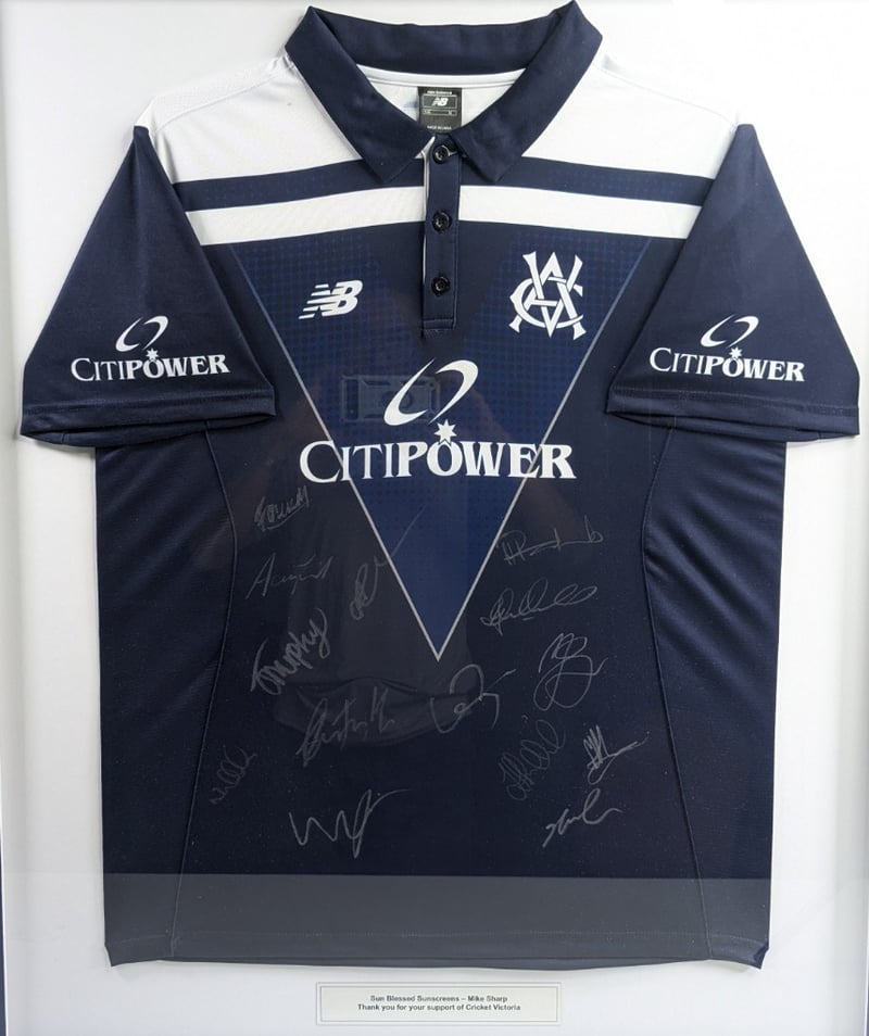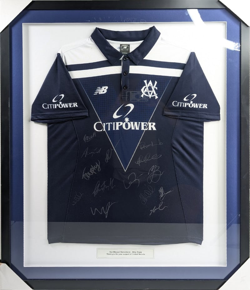 FRAMED SIGNED JERSEY, VICTORIAN CRICKET TEAM JERSEY, ONE-DAY CUP UNIFORM 2022-2023 SEASON.