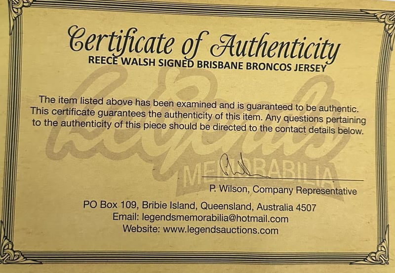 REECE WALSH SIGNED 2025 BRISBANE BRONCOS JERSEY A Brisbane Broncos Jersey Personally Signed By Reece Walsh. Reece Walsh Is An Australian Professional Rugby League Footballer Who Plays As A Fullback For The Brisbane Broncos In The Nrl. The Item Is Accompanied By A Certificate Of Authenticity. Condition: Good - Refer To Images 585045+1