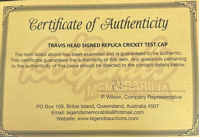 A Replica Australia Test Cap Personally Signed By Travis Head. Travis Head Is An Australian International Cricketer Who Represents The Australia National Cricket Team In All Formats And Is The Current Test Vice-Captain. The Item Is Accompanied By A Certificate Of Authenticity.