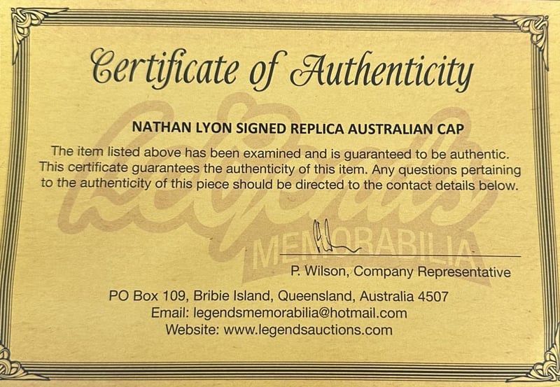 A Replica Australia Test Cap Personally Signed By Nathan Lyon. Nathan Lyon Is An Australian International Cricketer. Lyon Made His Test Debut In 2011 And Plays Domestic Cricket For New South Wales. The Item Is Accompanied By A Certificate Of Authenticity.