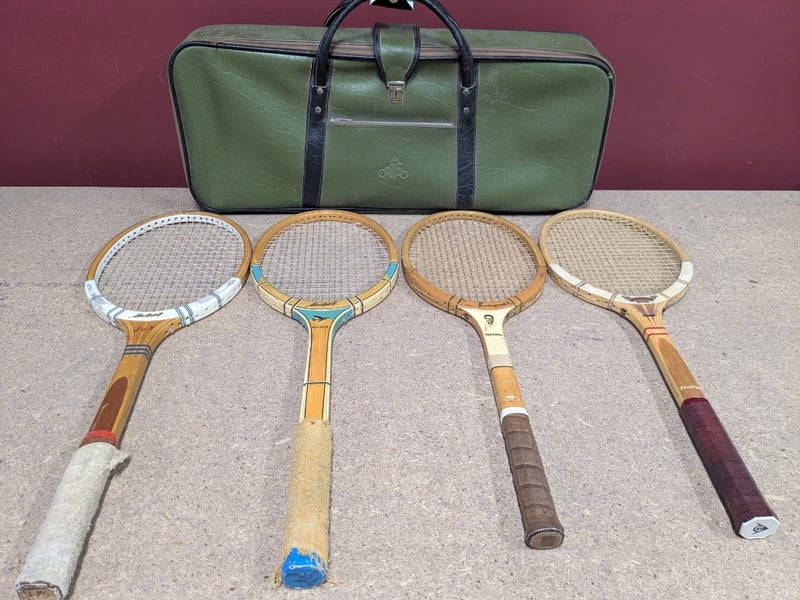 Tennis rackets, vintage tennis rackets, Assorted rackets including Dunlop, Slazenger and more