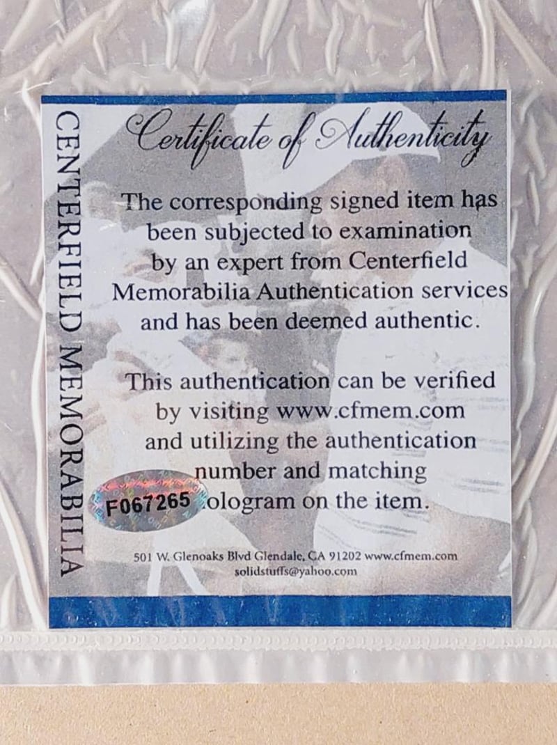 Comes With Certificate Of Authenticity From Centrefield Memorabilia Authentication