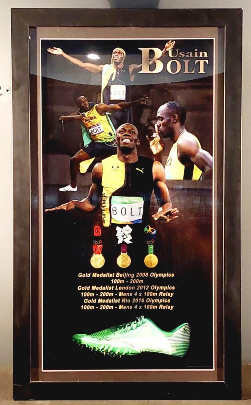 USAIN BOLT HANDSIGNED SPIKE IN FRAMED DISPLAY