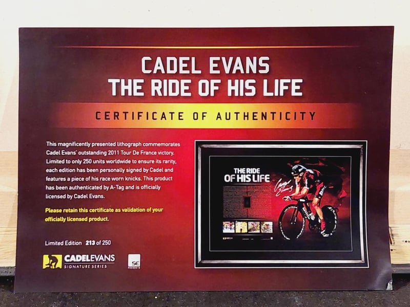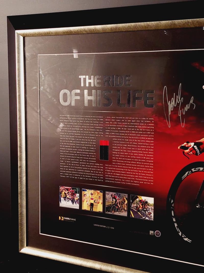 CADEL EVANS HANDSIGNED PRINT IN FRAMED DISPLAY