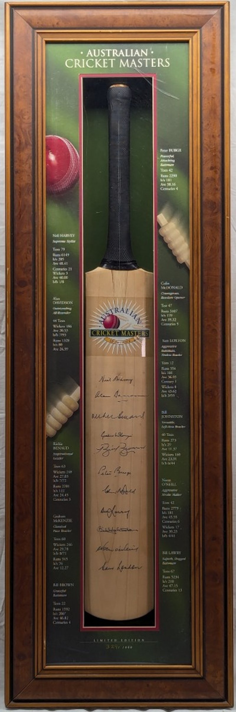 Edition Number: 329/1000, Bat Features Eleven Signatures Including Neil Harvey, Alan Davidson, Richie Renaud, Etc