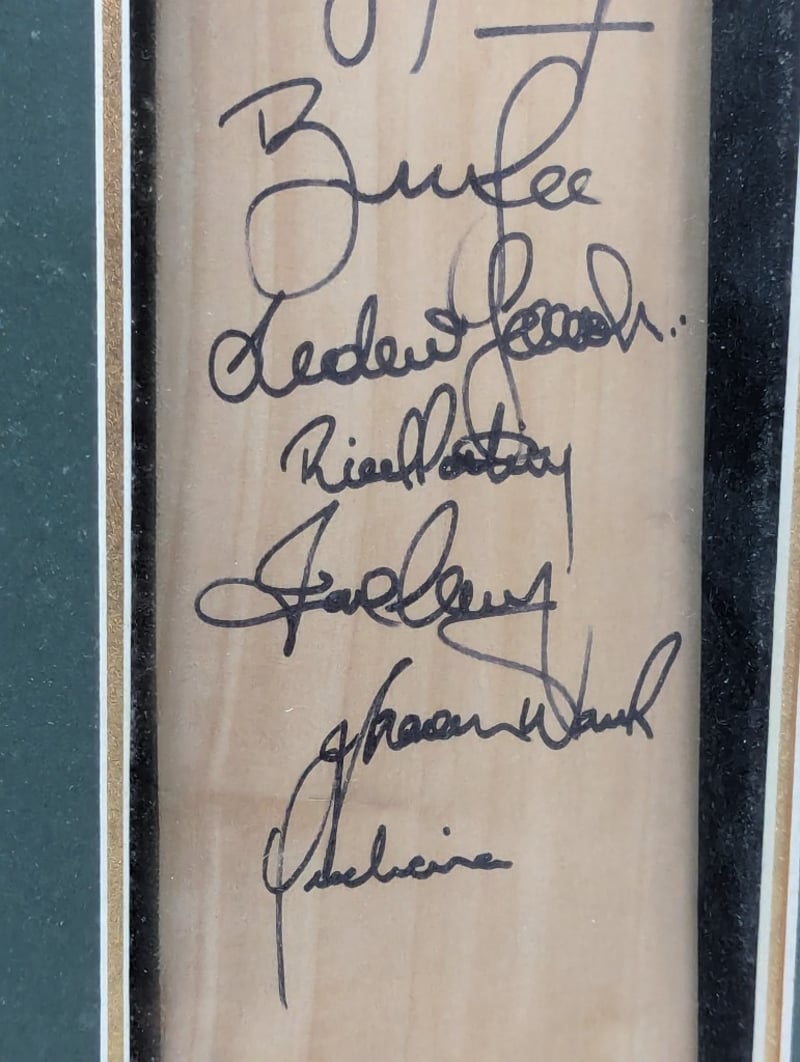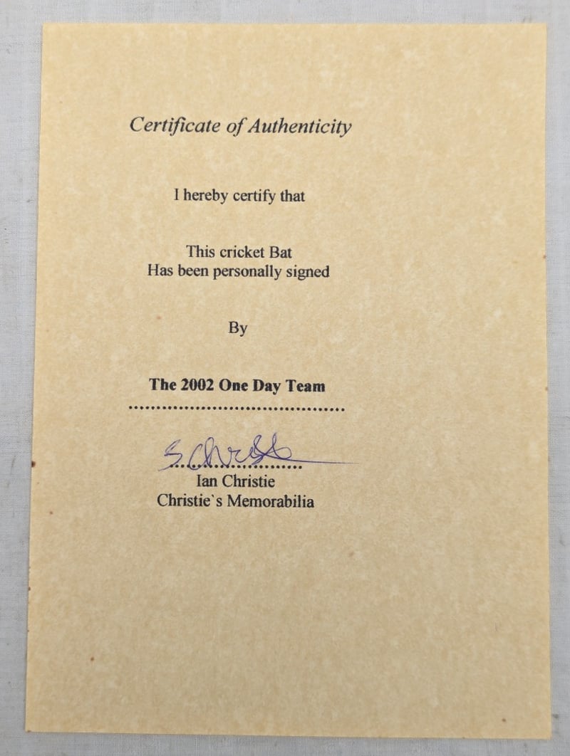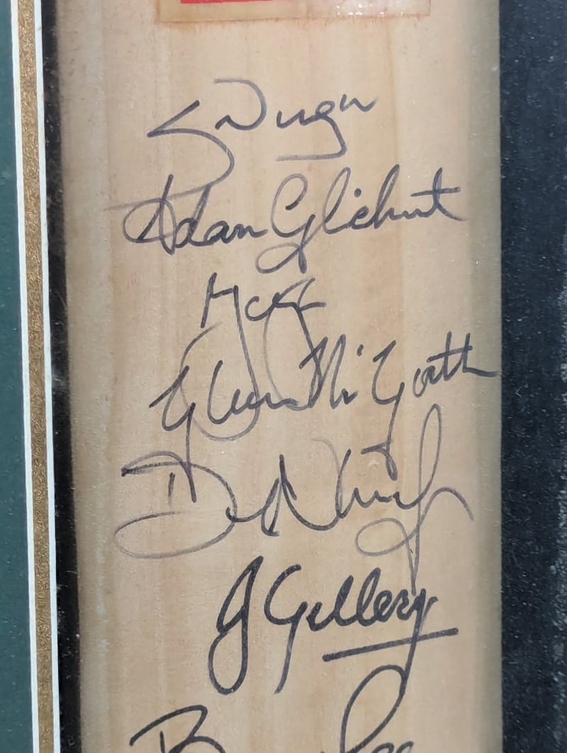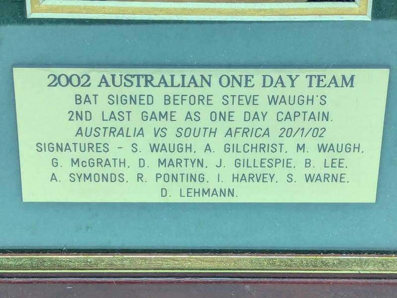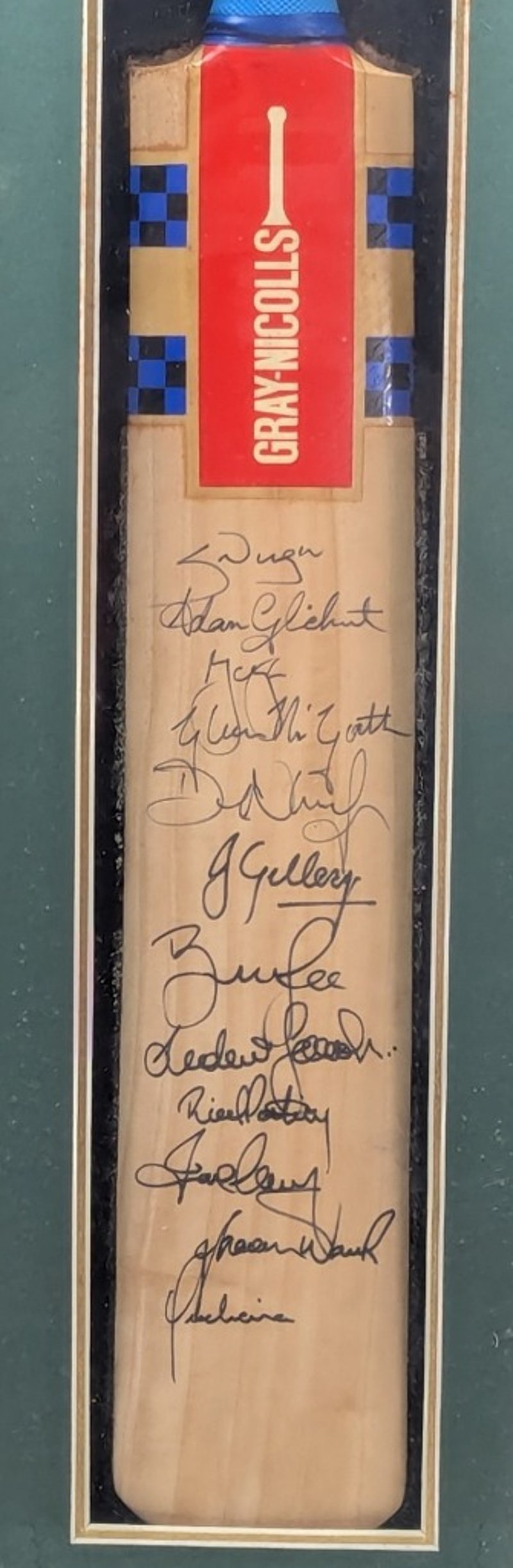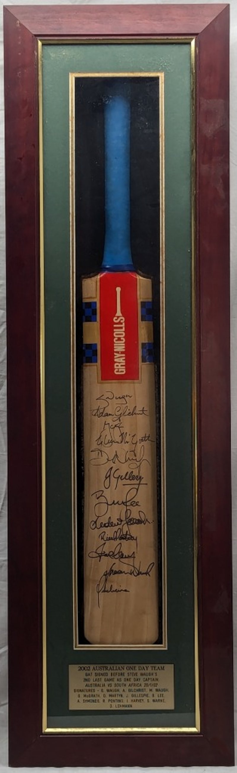 SIGNED '2002 AUSTRALIAN ONE DAY TEAM' CRICKET BAT IN DISPLAY CASE