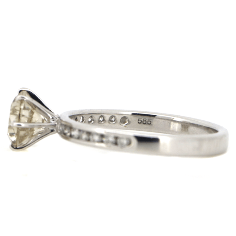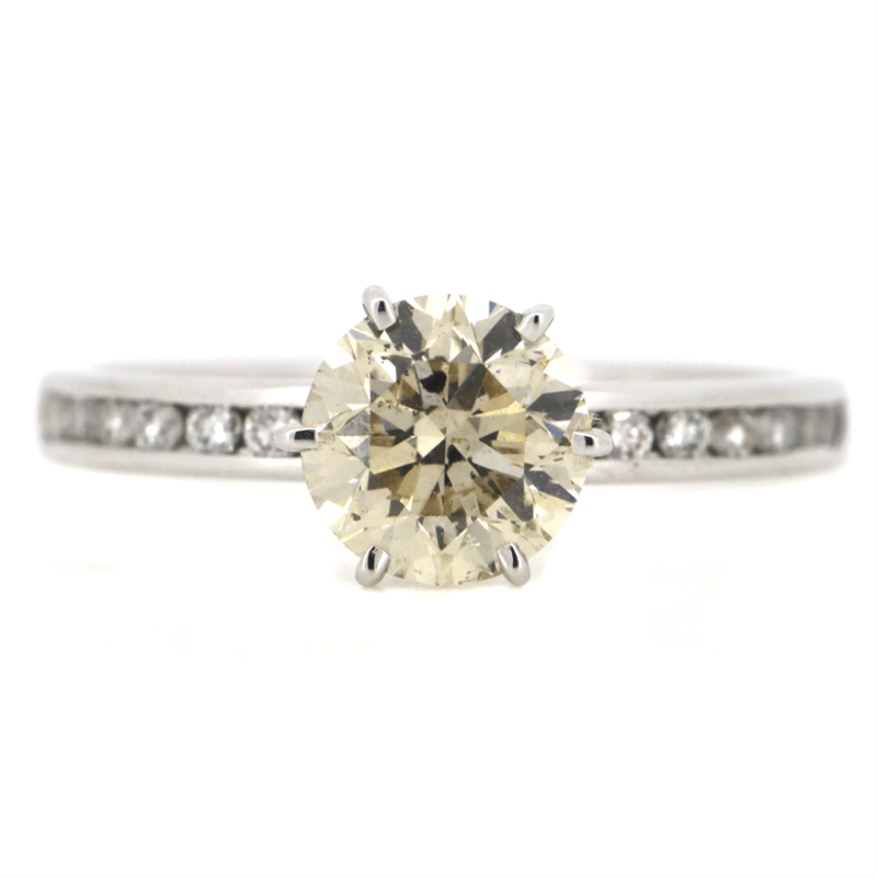 The Centre Features, One Round Brilliant Cut, Diamond (1.66Ct, K-L Colour, P1-P2 Clarity), 6 Claw Set. Decorating The Band Are, 14 Round Brilliant Cut, Diamonds (0.28Ct Tdw, G-H Colour, Si1-Si2 Clarity), Channel Set. Ring Size Q 1/2.