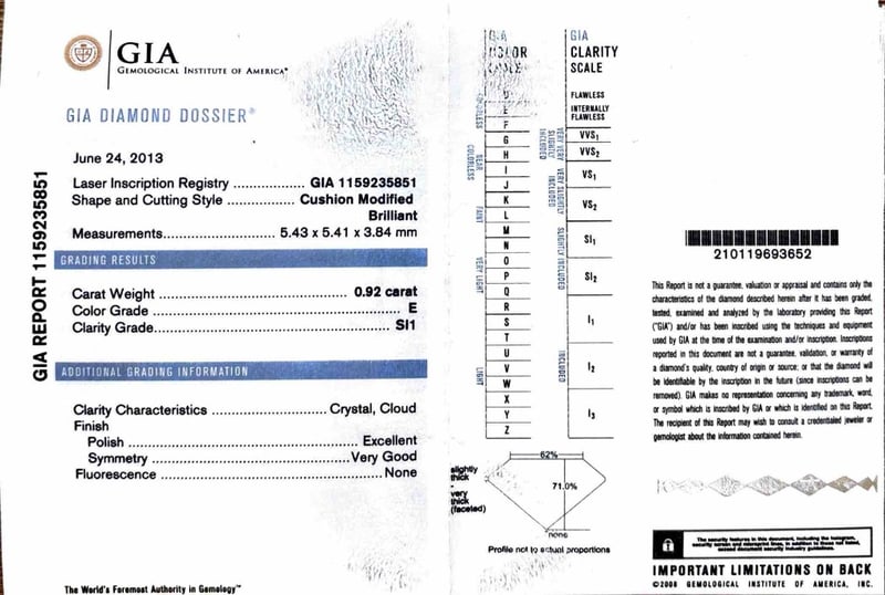 Markings: Report Number Is Laser Inscribed On Girdle Of Stone.
