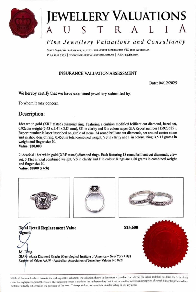 This valuation has been conducted by an independent third-party professional. The valuation amount is an assessment by the issuing valuer and does not reflect the auction value of the item.