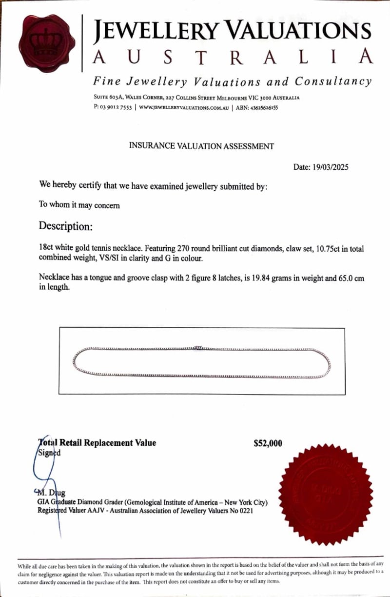 Featuring 270 Round Brilliant Cut Diamonds, Claw Set, 10.75Ct In Total Combined Weight, Vs/Si In Clarity And G In Colour. Necklace Has A Tongue And Groove Clasp With 2 Figure 8 Latches