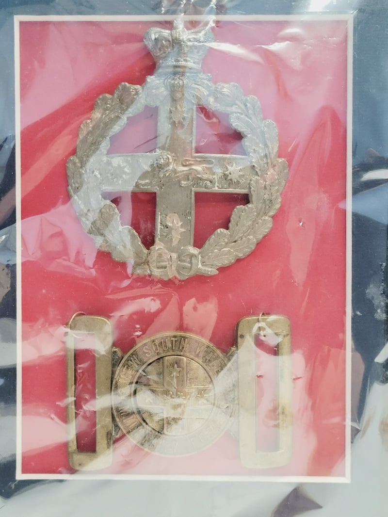 MILITARY COLLECTIBLES, AUSTRALIAN NEW SOUTH WALES MILITARY FORCES VICTORIAN SLOUCH HAT BADGE AND OTHER RELATED COLLECTIBLES