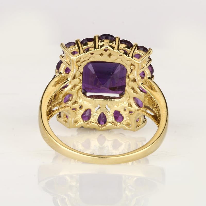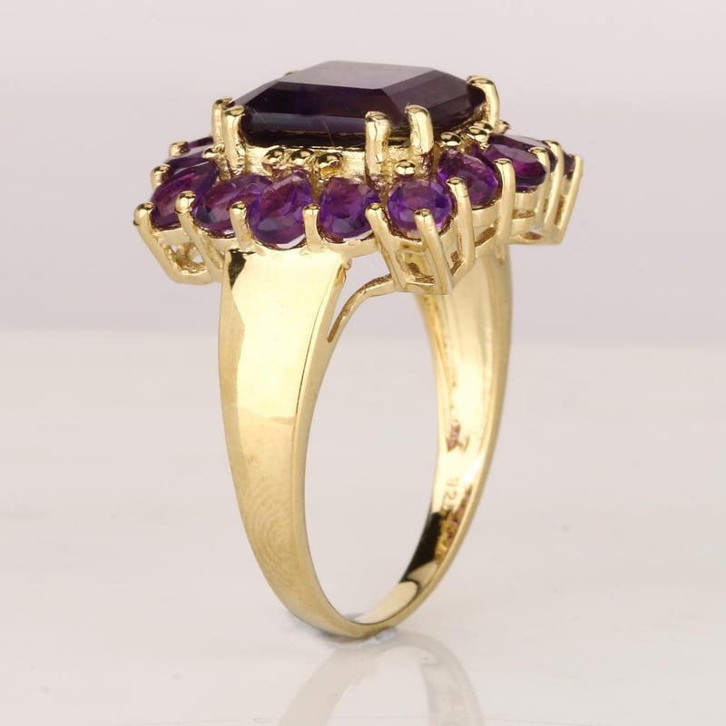 Indulge in the exquisite allure of this stunning ring, featuring a breathtaking 10.00mm octagon-cut African Amethyst at its center. This regal gemstone radiates a deep, enchanting violet hue, embodying both sophistication and mystery. The octagonal shape enhances its brilliance, creating a striking focal point that effortlessly draws the eye.