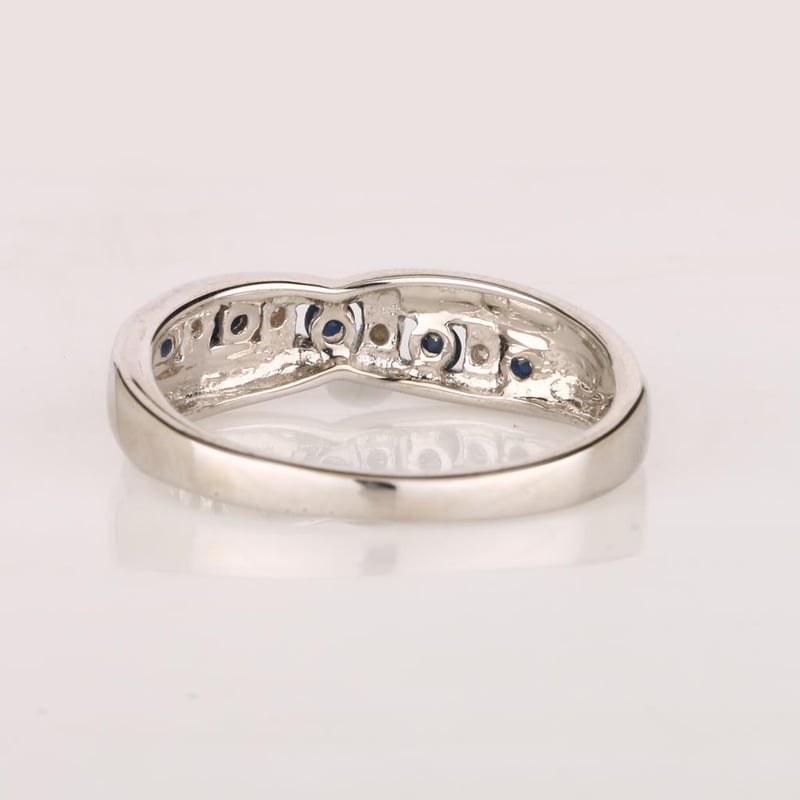 Indulge in the exquisite allure of this stunning ring, showcasing a harmonious blend of vibrant blue sapphires and sparkling white diamonds. The centerpiece features five mesmerizing round blue sapphires, each measuring between 2.10 to 2.20mm, radiating a deep and enchanting hue that evokes the serene depths of the ocean. These captivating gemstones are artfully complemented by four brilliant round white diamonds, each 0.90mm in size, that add a touch of celestial brilliance to the design.
