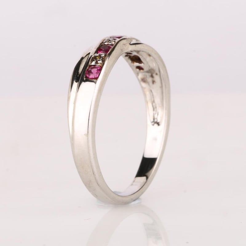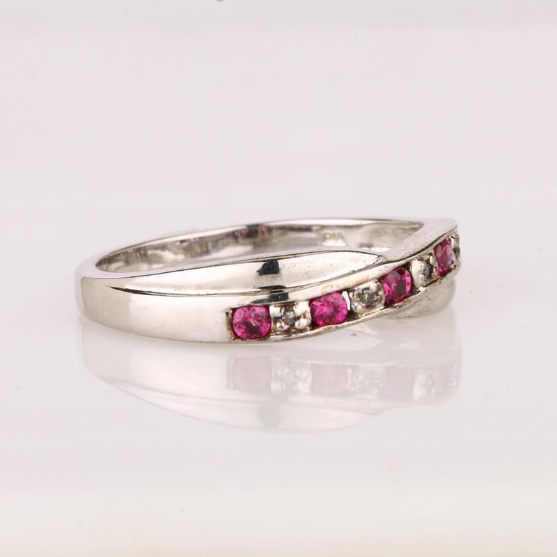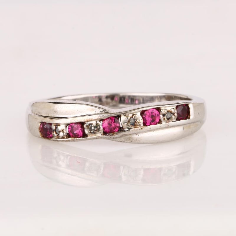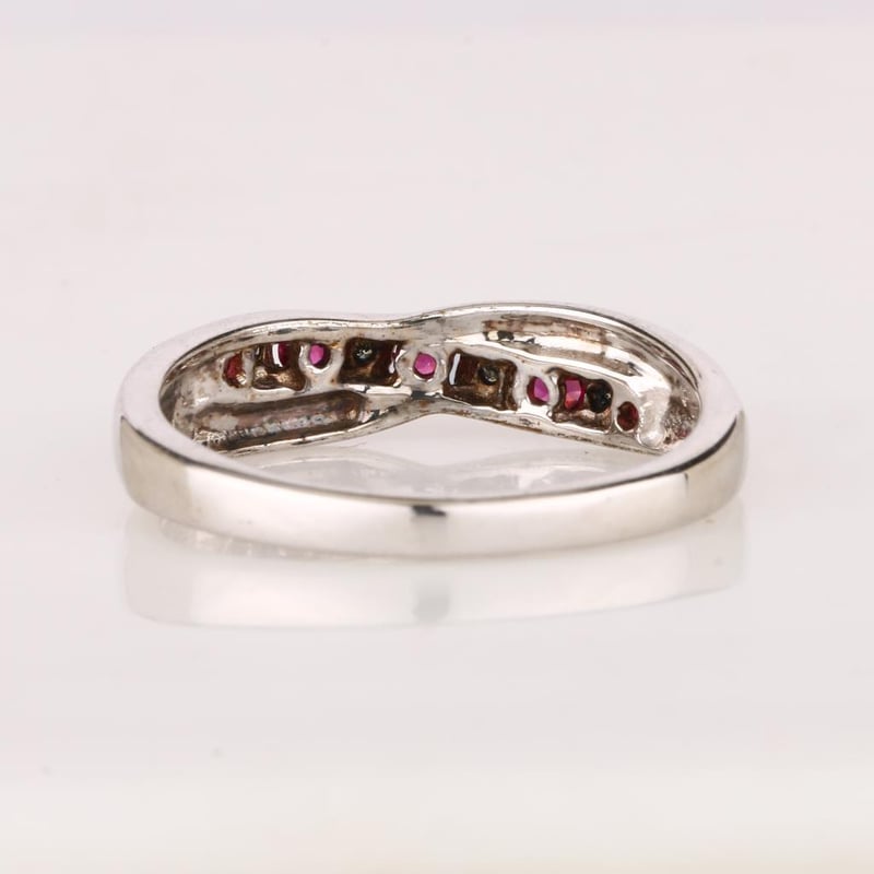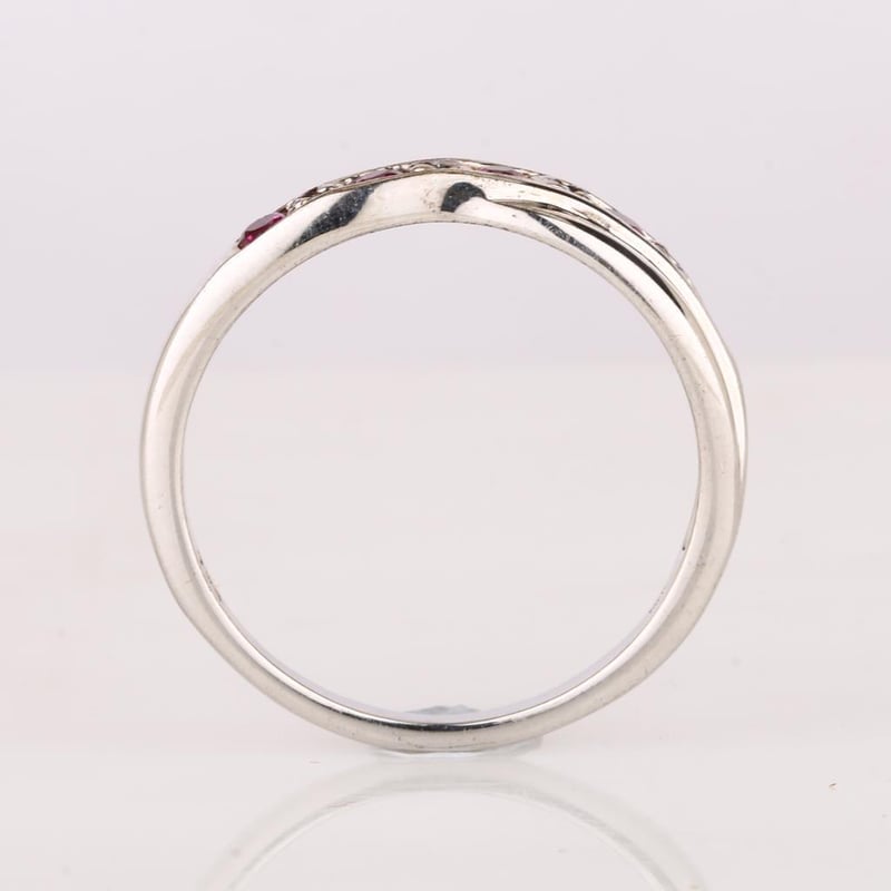 Indulge in the epitome of luxury with this captivating ring, showcasing a harmonious arrangement of five perfect Bkk rubies, each a dazzling round 2.10-2.20mm in size. These exquisite gemstones exude a deep, rich red hue, evoking the allure and passion synonymous with the finest rubies. Complementing this radiant display are four sparkling white diamonds, each delicately cut into a round 0.90mm shape, providing a brilliant contrast that enhances the overall beauty of the piece.