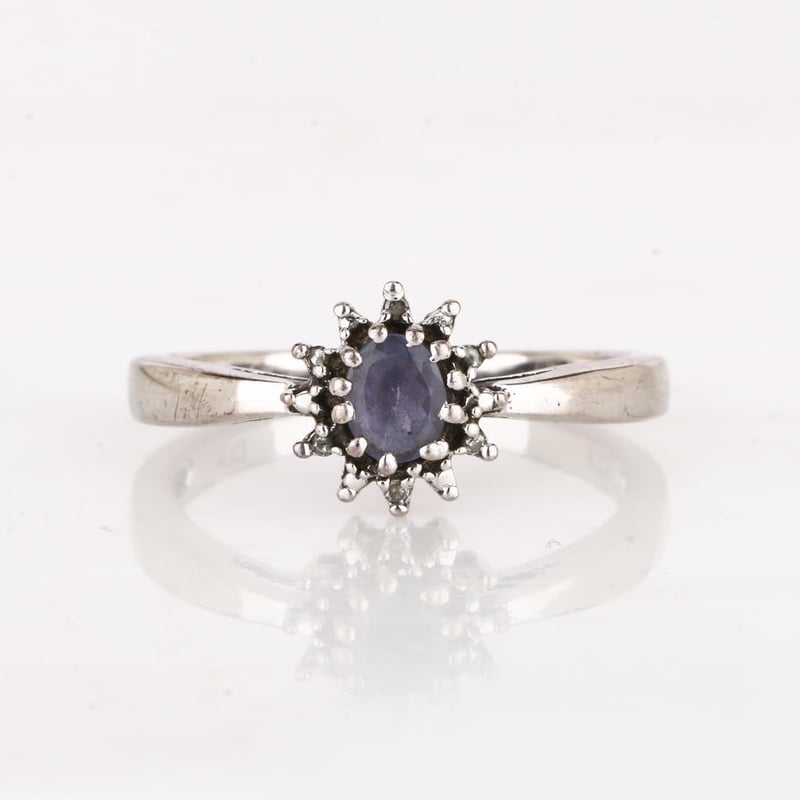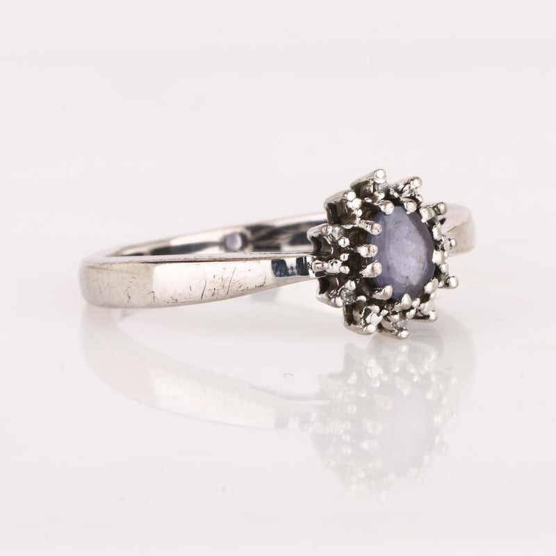 Exquisite Tanzanite and Diamond Halo Ring Step into a realm of elegance with this breathtaking ring, showcasing a stunning AA+ oval tanzanite measuring 5x4mm at its center. This rare gem, celebrated for its captivating hues of violet and blue, is a true testament to nature's artistry. Encircling the tanzanite are six sparkling round white diamonds, each 0.90mm in size, expertly set to enhance the allure of the central stone and create a dazzling halo effect. Crafted with meticulous attention to detail, this ring radiates sophistication and allure, making it the perfect statement piece for the discerning collector or a memorable gift for a loved one. Its luxurious design is perfect for both everyday wear and special occasions, ensuring that it will be cherished for years to come. Embrace the elegance and allure of this exquisite tanzanite and diamond ring—it’s not just a piece of jewelry; it’s a celebration of beauty and sophistication.