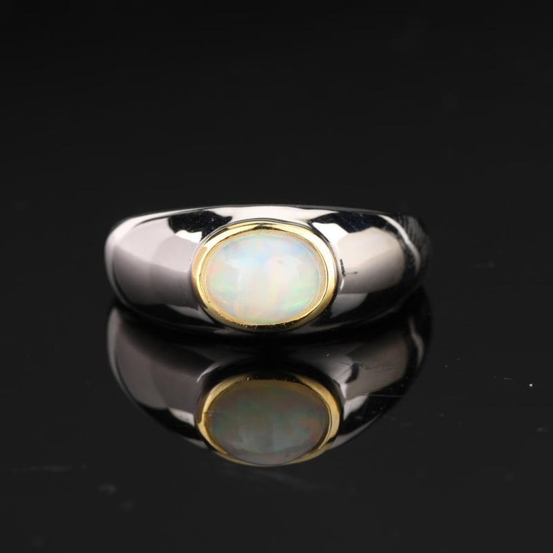 Ethereal Ethiopian Opal Ring in Yellow Pen RhodiumStep into a realm of enchantment with this exquisite Ethiopian Opal ring, a true masterpiece that captures the very essence of elegance and beauty. The centerpiece of this luxurious piece is a stunning oval opal, measuring 8x6mm, which reveals an otherworldly play of colors reminiscent of a sun-drenched landscape. Its captivating hues dance effortlessly between vibrant greens, fiery oranges, and shimmering blues, creating a mesmerizing effect that shifts with every glance.Designed in exquisite yellow pen rhodium, the band enhances the opal's ethereal glow, combining both warmth and sophistication. The luxurious finish not only provides a striking contrast to the opal's vivid colors but also ensures durability and lasting brilliance. With a stone height of 4.10mm, this ring boasts a graceful profile that is both eye-catching and comfortable to wear.Whether you are dressing up for a special occasion or adding a touch of glamour to your everyday ensemble, this Ethiopian Opal ring is an essential addition to any jewelry collection. Embrace the allure of opulence and let this enchanting piece become a cherished token of elegance and style. Don't miss the opportunity to own a piece of art that celebrates the beauty of nature in its purest form.