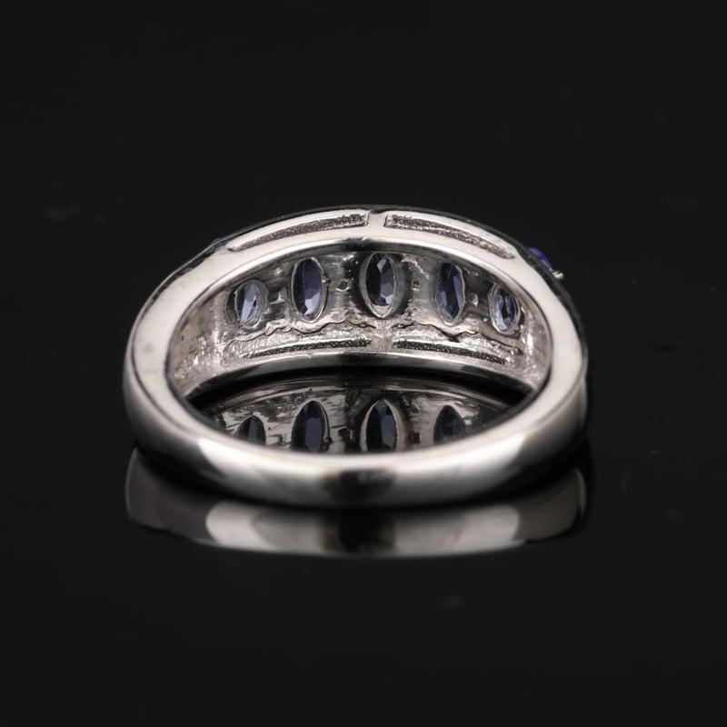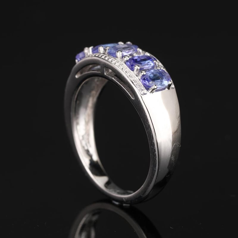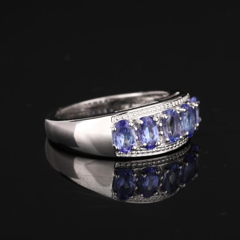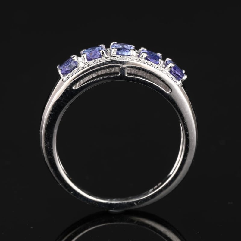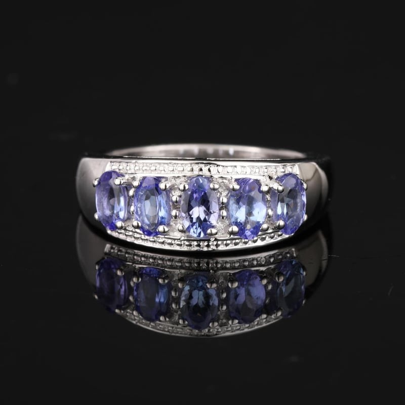 Indulge in the serene beauty of this breathtaking ring, showcasing five captivating lavender tanzanite ovals, each measuring 5x3mm. With their delicate violet hue and unmatched clarity, these gemstones evoke a sense of tranquility and elegance that is simply irresistible.
