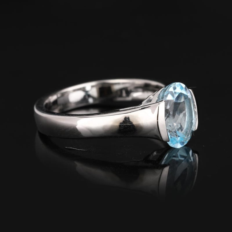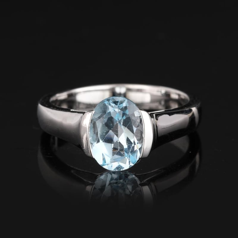 Indulge in the breathtaking allure of this exquisite Blue Topaz Oval Ring, featuring a stunning 9x7mm gemstone that captures the essence of serene blue skies and tranquil ocean depths. The vibrant hue of the topaz radiates a captivating brilliance, creating an enchanting focal point that is sure to draw admiration from all who behold it.