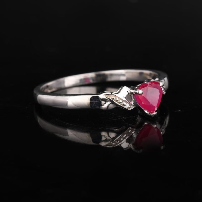Heartfelt Elegance: BKK Ruby Heart-Shaped Ring with White Diamond Accents