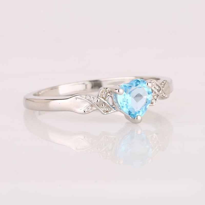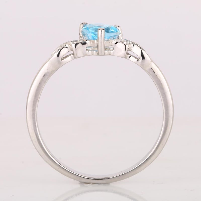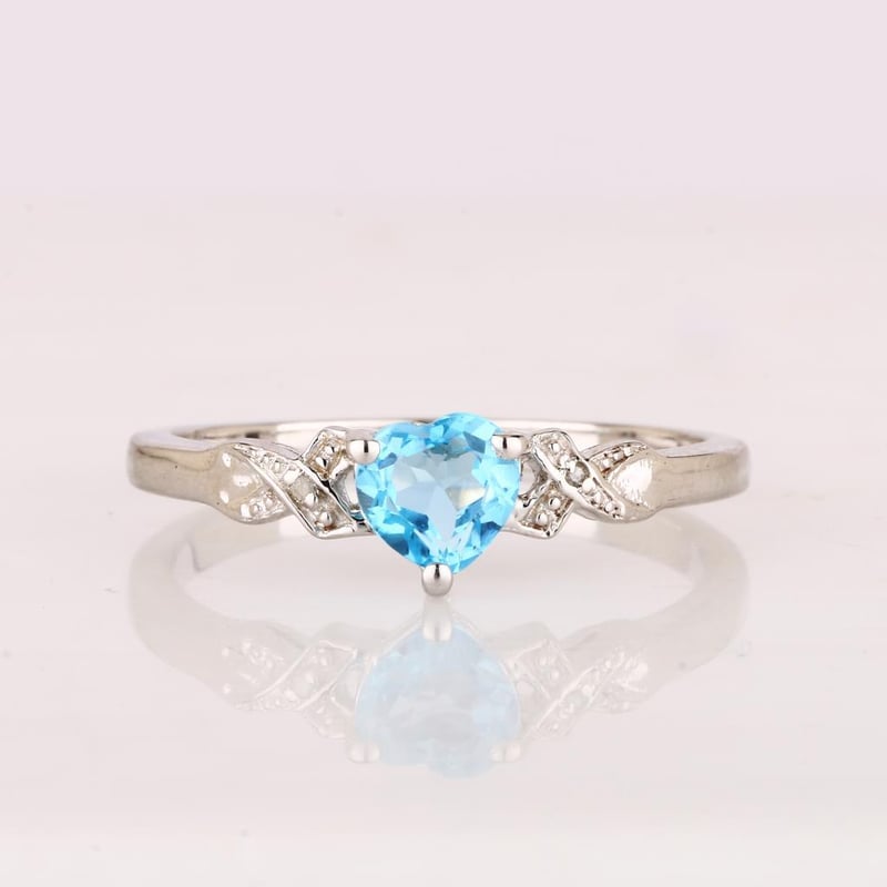 Crafted with precision and designed to capture the heart, this piece is a testament to timeless elegance. The radiant blue of the topaz beautifully contrasts with the scintillating diamonds, creating a breathtaking dance of light and color. Whether worn as a symbol of love or a personal indulgence, this ring promises to be a cherished addition to your jewelry collection, inviting admiration and sparking joy wherever it is worn. Don't miss your chance to own this stunning piece that perfectly marries sophistication with heartfelt sentiment.