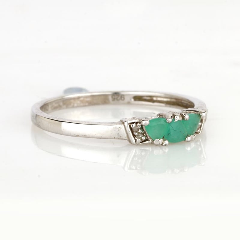 Captivating Sakota Emerald Trillion Ring with Dazzling White Diamonds