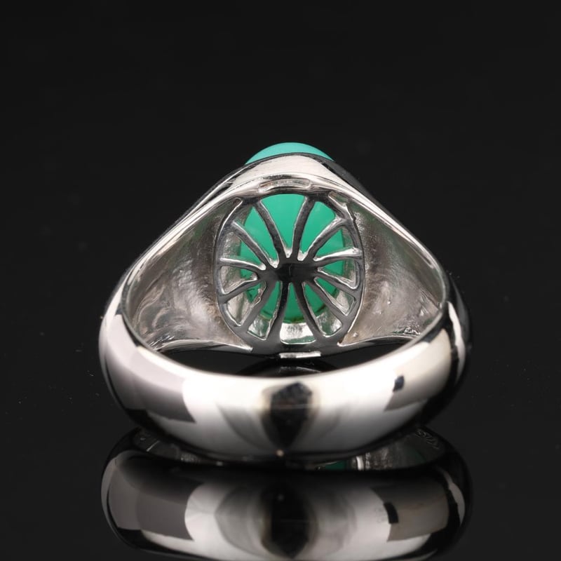 Crafted with meticulous attention to detail, this exquisite chrysoprase ring embodies the essence of timeless beauty. Add a touch of nature's splendor to your jewelry box, and let this remarkable piece be the centerpiece of your collection. Bid now to make this exceptional ring yours and embrace the elegance it brings!