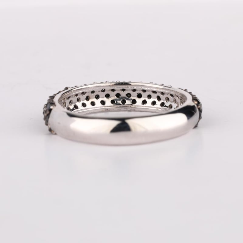 Step into a realm of sophistication with this stunning half band ring, meticulously adorned with 67 sparkling black spinels, each a perfect 1.50mm round gem. Set against a luxurious black pan rhodium finish, this ring exudes an air of mystery and allure, making it an exceptional addition to any jewelry collection.