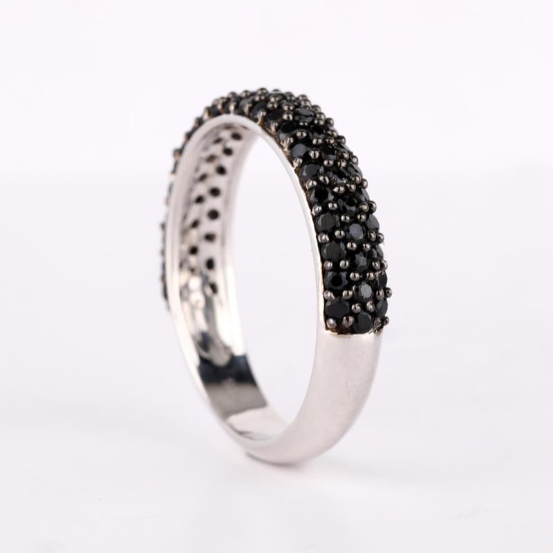 Every spinel captures and reflects light, creating a captivating dance of shadows and brilliance that will effortlessly elevate any ensemble. The sleek design of the half band allows for comfortable wear while ensuring that the striking stones take center stage. Ideal for both everyday elegance and special occasions, this piece is a testament to the timeless beauty of black gemstones.